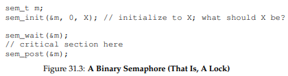 Lock을 얻는 것은 sem_wait(&m) 가 되며 value를 감소시키는 P 연산을 말하고 감소 시킬 value가 없다면 wait 한다.