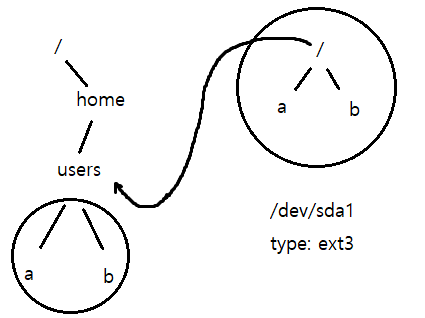 따라서 붙이고 나면 /dev/sda1의 루트가 users와 내부적으로 동일한 포인터가 된다.