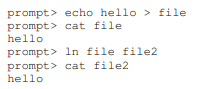 원래 있는게 file인데 file2로 link를 하고 cat file2를 하니까 file과 같은 내용이 나온다.
