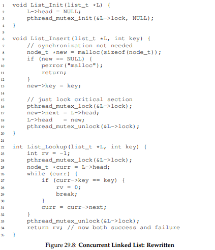 여러 Thread에서 접근하는 자료구조이기 때문에 Linked List에서 작업을 하기 위해선 Lock이 필요하다.